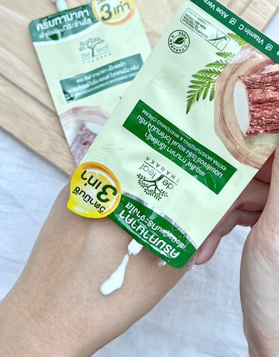 แฟนคลับ De Leaf อย่างเราที่ใช้ทั้งสบู่ ครีมอาบน้ำ ครีมทาผิว แป้ง จะพลาดครีมซองอย่าง De Leaf Thanaka Cream ได้ไง