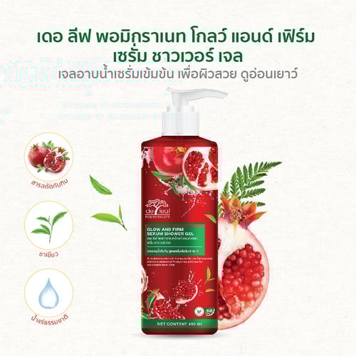 เดอ ลีฟ พอมิกราเนท โกลว์ แอนด์ เฟิร์มเซรั่ม ชาวเวอร์ เจล 450ml