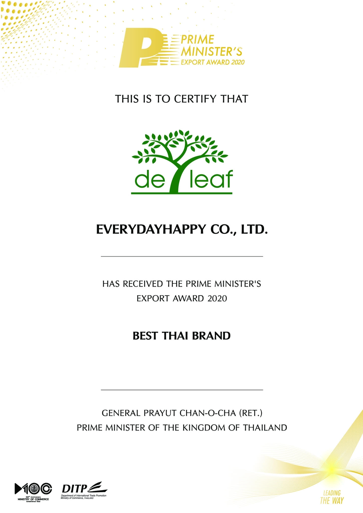For year 2020, Everydayhappy has been received the Prime Minister’s Export Award (PM Export Award) 2020, under the category of Best Thai brand.