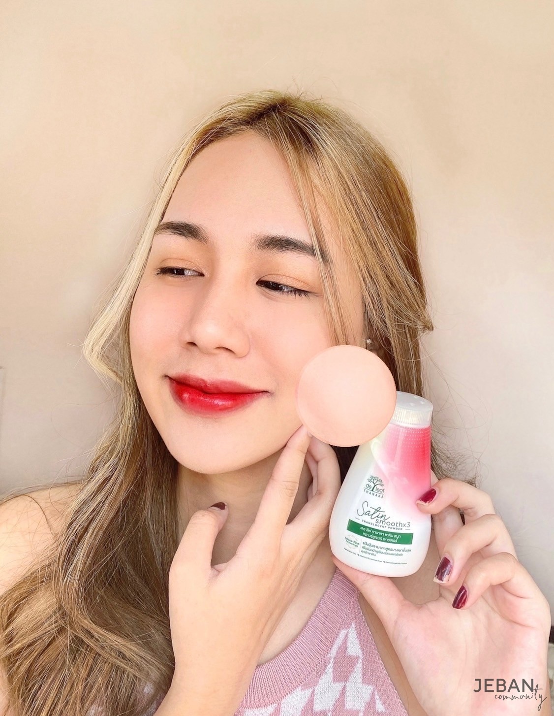 ลองแต่งหน้าแล้วปัด แป้งฝุ่นเดอ ลีฟ ทานาคา ซาติน หน้าเนียนเผยผิวเรียบเนียน กระจ่างใส่ บอกลาหน้าคล้ำ ผิวมัน