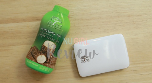 มาเริ่มจากตัวแรกก่อนเลย คือเจ้าแป้งฝุ่น De Leaf Thanaka Refreshing Talc ที่หน้าตาดูเหมือนแป้งทาตัวทั่วไป แต่เอาจริงๆ วิธีใช้ด้านหลังเค้าก็บอกว่าใช้โรยตัวค่ะ แต่พี่โอ๊ตเองได้ลองเอามาทาหน้า เพราะเห็นทั้งบล็อกเกอร์และสาวๆ หลายคนพูดเป็นเสียงเดียวกันว่าคุมมันได้ดีมากๆ และด้วยคุณสมบัติของทานาคาเองนั้น ก็ช่วยลดสิว ลดผดผื่นคัน ควบคุมความมัน และต้านอนุมูลอิสระได้ด้วย เลยอยากลองดูว่าทาบนหน้าแล้วจะเป็นยังไงค่ะ