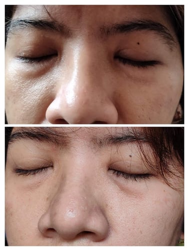 ในส่วนของความชุ่มชื่น และความกระจ่างใส สามารถเห็นผลตั้งแต่ 4 วันแรกที่ใช้แล้วหล่ะ แต่ต้องบอกก่อนว่า เราอายุเข้าเลข 4 แล้ว อาจจะมีการฟื้นตัวของผิวที่ช้ากว่า ซึ่งบางคนอาจจะเห็นผลตั้งแต่ใช้ครั้งแรกเลยก็ได้