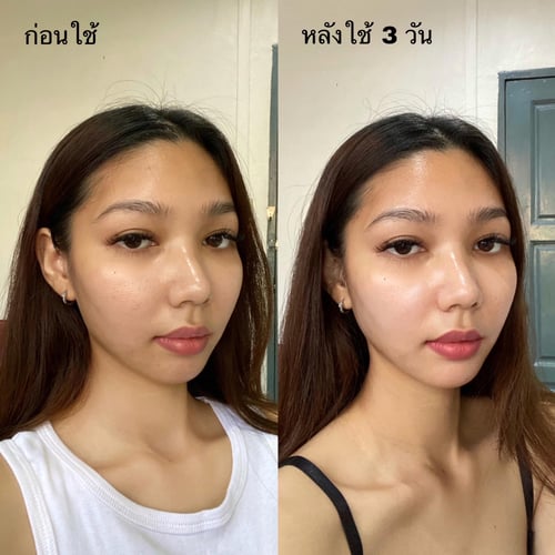 หลังใช้ 3 วันคือผลลัพธ์ผิวชุ่มชื้นขึ้น รอยสิวจางลง ที่สำคัญคือพอใช้ต่อเนื่องหน้าสว่างกระจ่างใสขึ้นแบบเทียบให้เห็นเลย