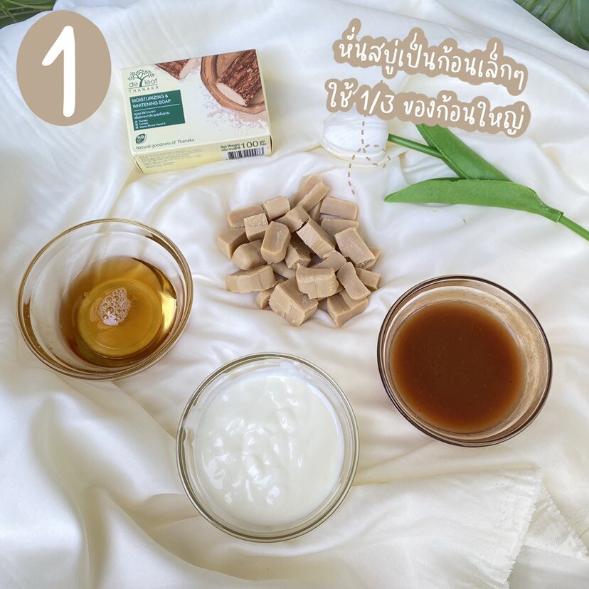 1. ใช้ " Deleaf thanaka moisturizing & whitening soap " โดยใช้1/3 ของก้อนหั่นเป็นชิ้นเล็กๆ