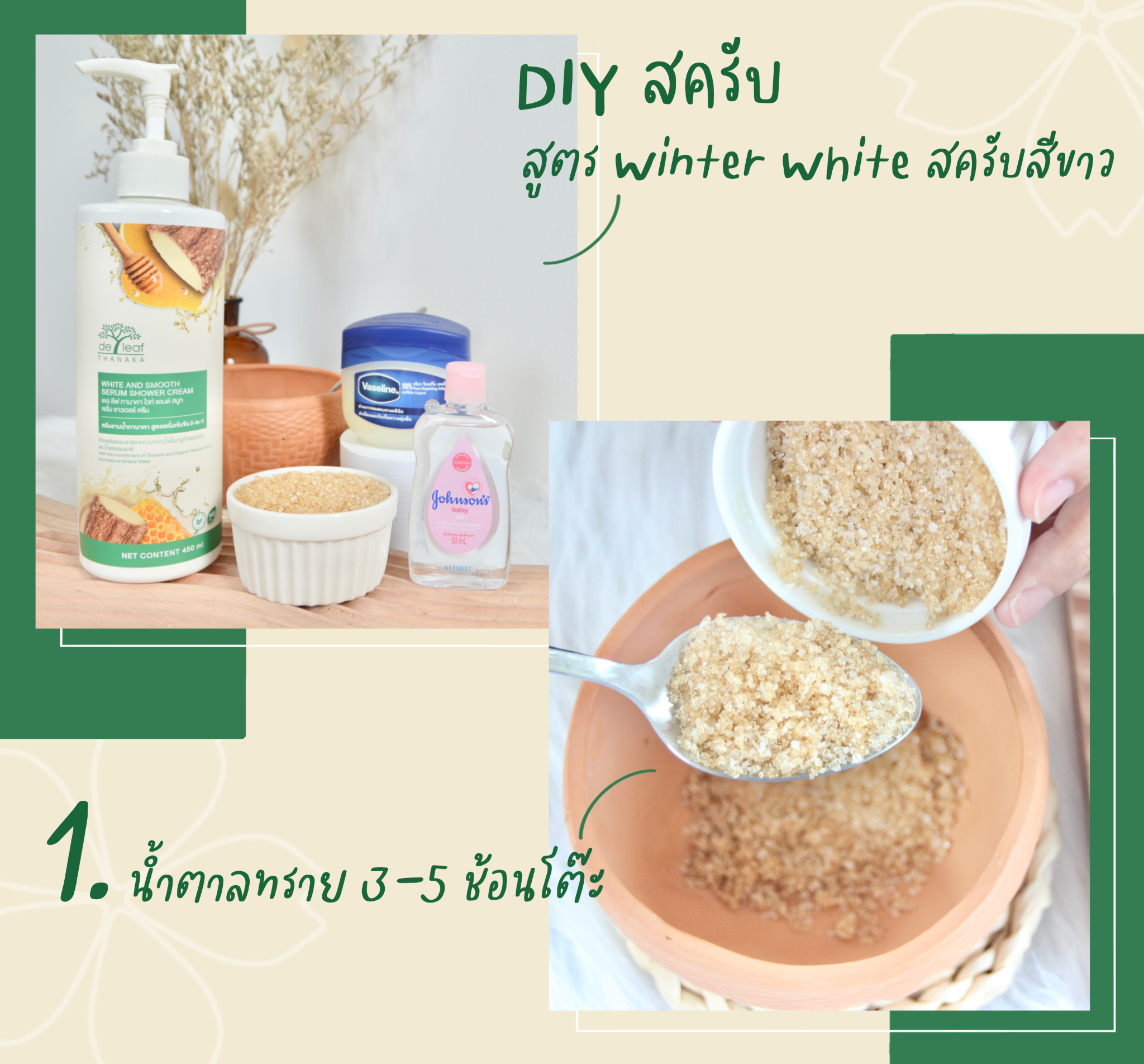 มาค่ะ เรามาเตรียมส่วนผสม DIY สครับผิว สูตร Winter White สครับสีขาว กันค่ะ