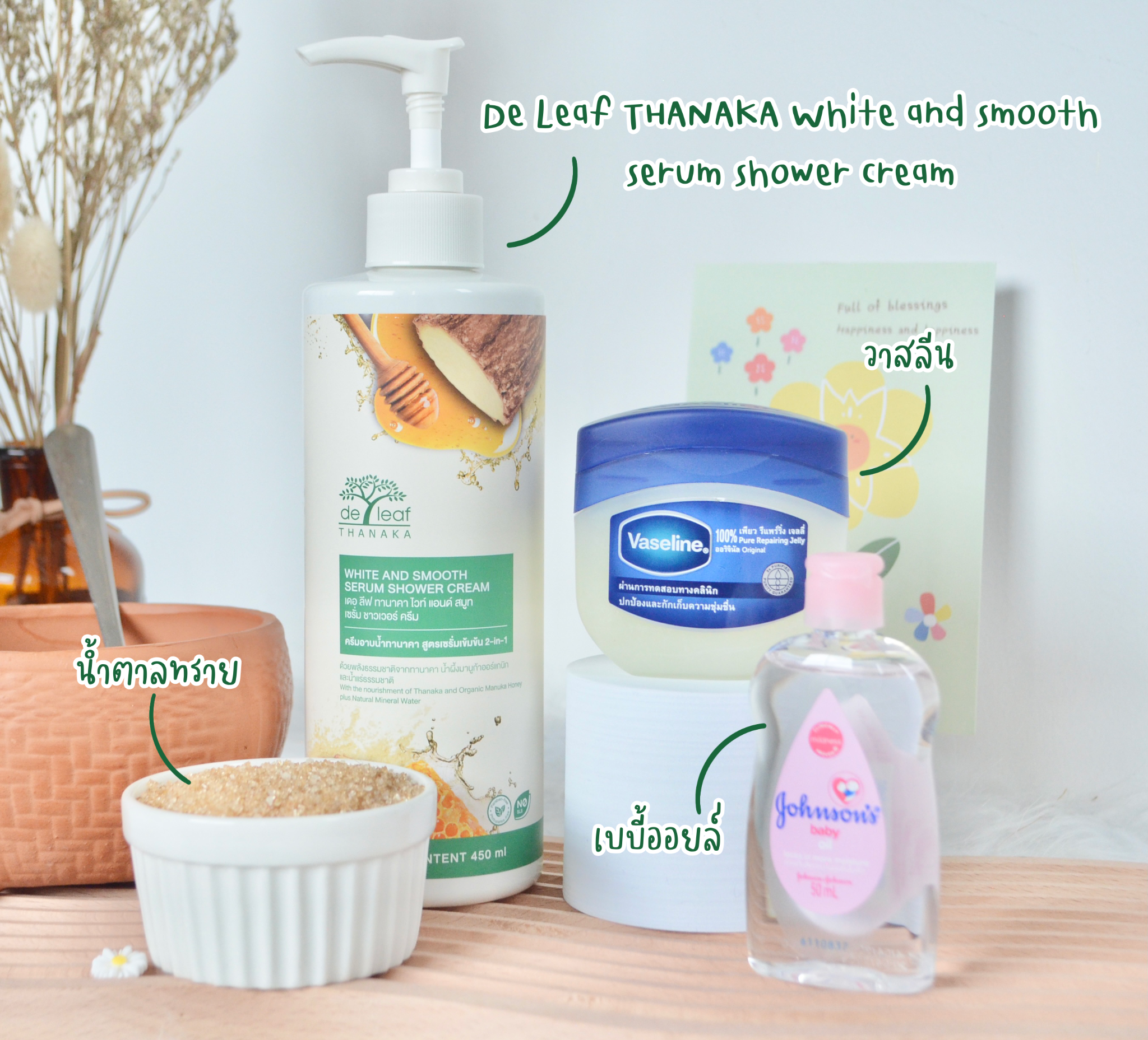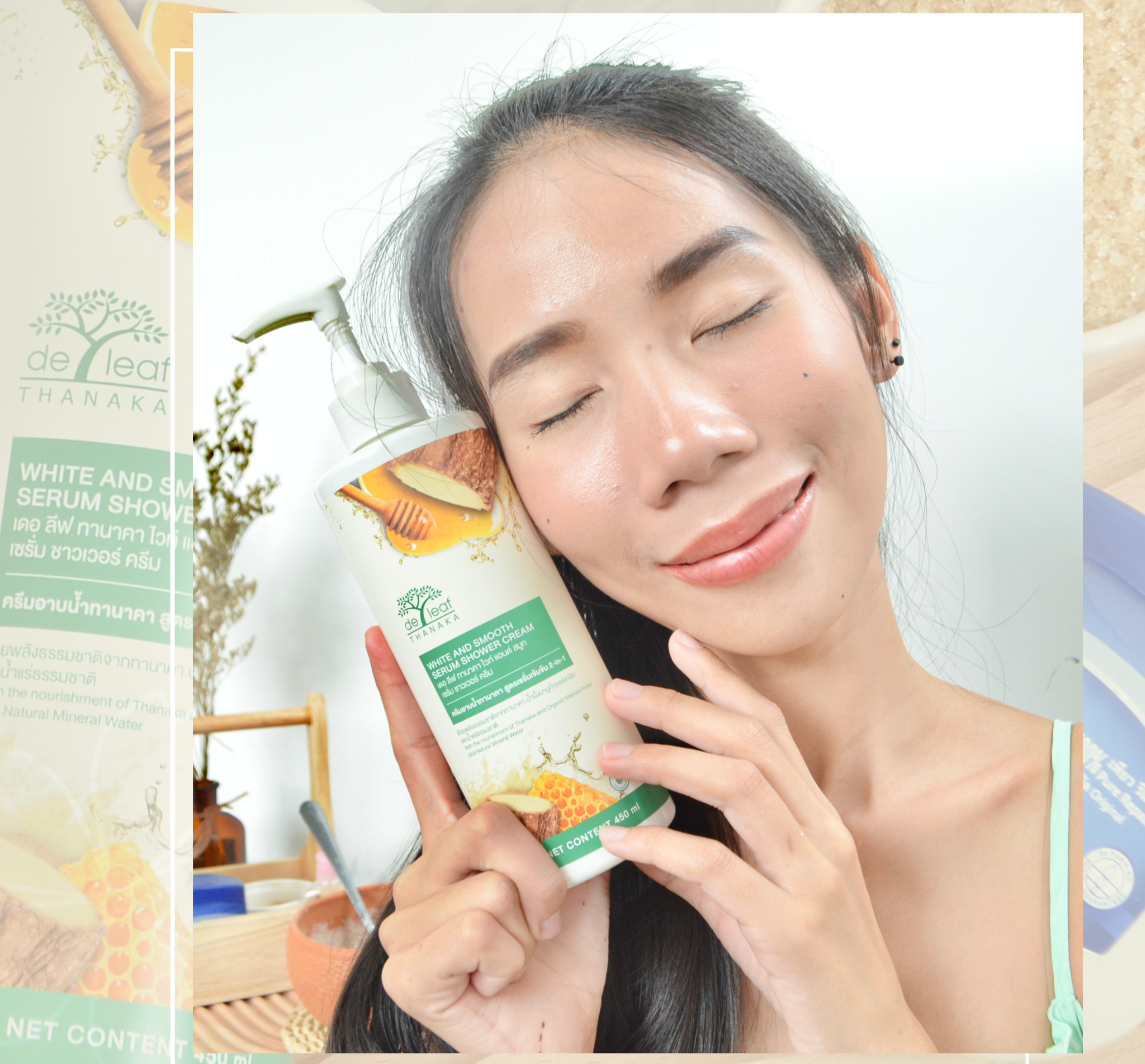 4. สิ่งที่ขาดไม่ได้เลย ครีมอาบน้ำ De Leaf THANAKA WHITE AND SMOOTH SERUM SHOWER CREAM เนื้อครีมเข้มข้น นุ่ม ละมุน สูตรนี้ไม่ต้องใส่น้ำผึ้ง เพราะครีมอาบน้ำ เดอ ลีฟ ทานาคา มีส่วนผสมของทานาคาและน้ำผึ้งมานูก้า อยู่แล้ว และกลิ่นของครีมอาบน้ำ คือ หอมมากกก ช่วยให้ผ่อนคลาย เป็นกลิ่นที่โอชอบมากๆ เลยค่ะ