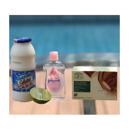 นี้เลยค่าสูตรเด็ดที่จีจะมาแนะนำวันนี้ ใช้ส่วนประกอบแค่ 4 อย่างเท่านั้น สบู่เดอ ลีฟ ทานาคา 1/3 ก้อน,เบบี้ออย 1 ช้อน,นมสด ครึ่งถ้วยและมะนาว ครึ่งลูก (น้ำและผิวมะนาว) สูตรนี้คือจีได้ลองใช้แล้วรู้สึกว่าเห็นผลจริงๆ เลยอยากมาแชร์ คือผิวใสขึ้น เนียนขึ้นในระดับนึงเลยไปค่ะเราไปเริ่มกันเลยดีกว่า
