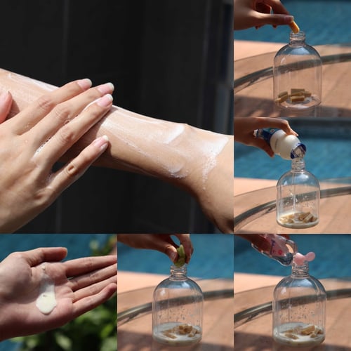 หั่นสบู่เป็นชิ้นเล็กๆ ใช้ประมาณ 1/3 ก้อน หั่นเล็กเท่าไหร่ก็จะละลายง่ายขึ้นน ใส่ลงไปในขวดที่เราเตรียมไว้ได้ หลังจากนั้น เติมนมลงไปตามด้วยเบบี้ออย ขั้นตอนสุดท้าย บีบมะนาวลงไปเลย ใส่ไปพร้อมเปลือกเลยก็ได้นะคะ แค่นี้ก็เสร็จแล้วค่ะ เอาไปใช้ขัดตัวได้เลย กลิ่นหอมมากๆเลยค่ะ เนื้อโฟมก็นุ่มมากเลยทีเดียว